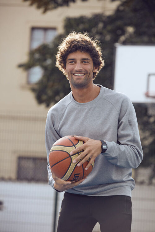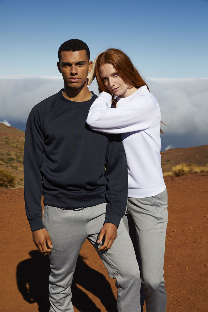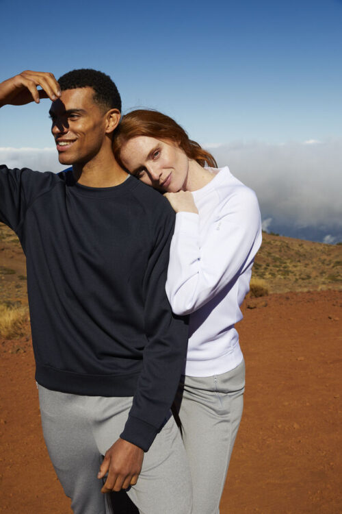 Sweatshirt i unisexmodell. Lomme på ermet med ton i ton glidelås. Herringbone nakkebånd og ribb i nedekant og ermavslutning. Spun dyed. Avtagbar etikett i nakken.