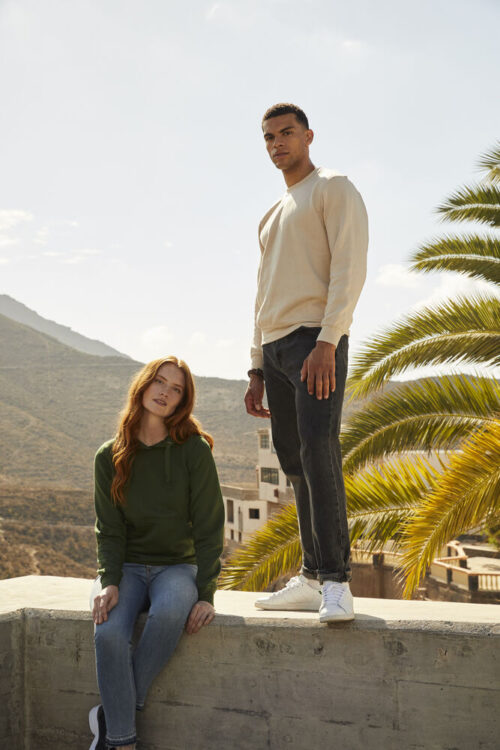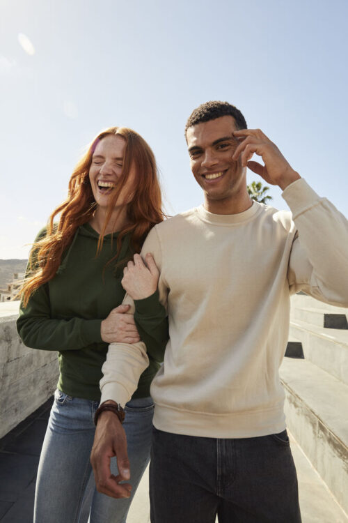 Rundhalset genser i unisex-modell. Børstet innside. Ribb i mansjett og nederkant.