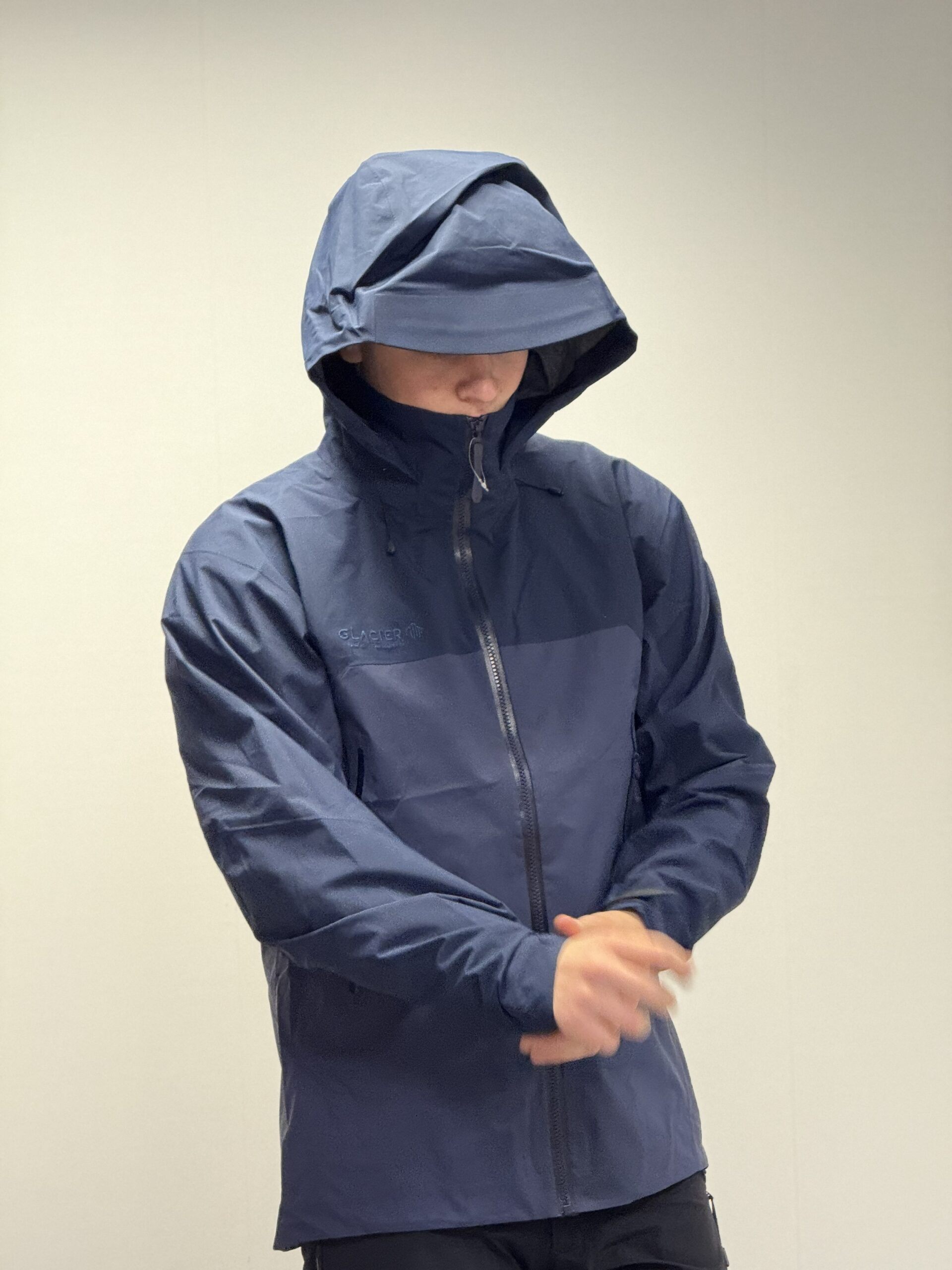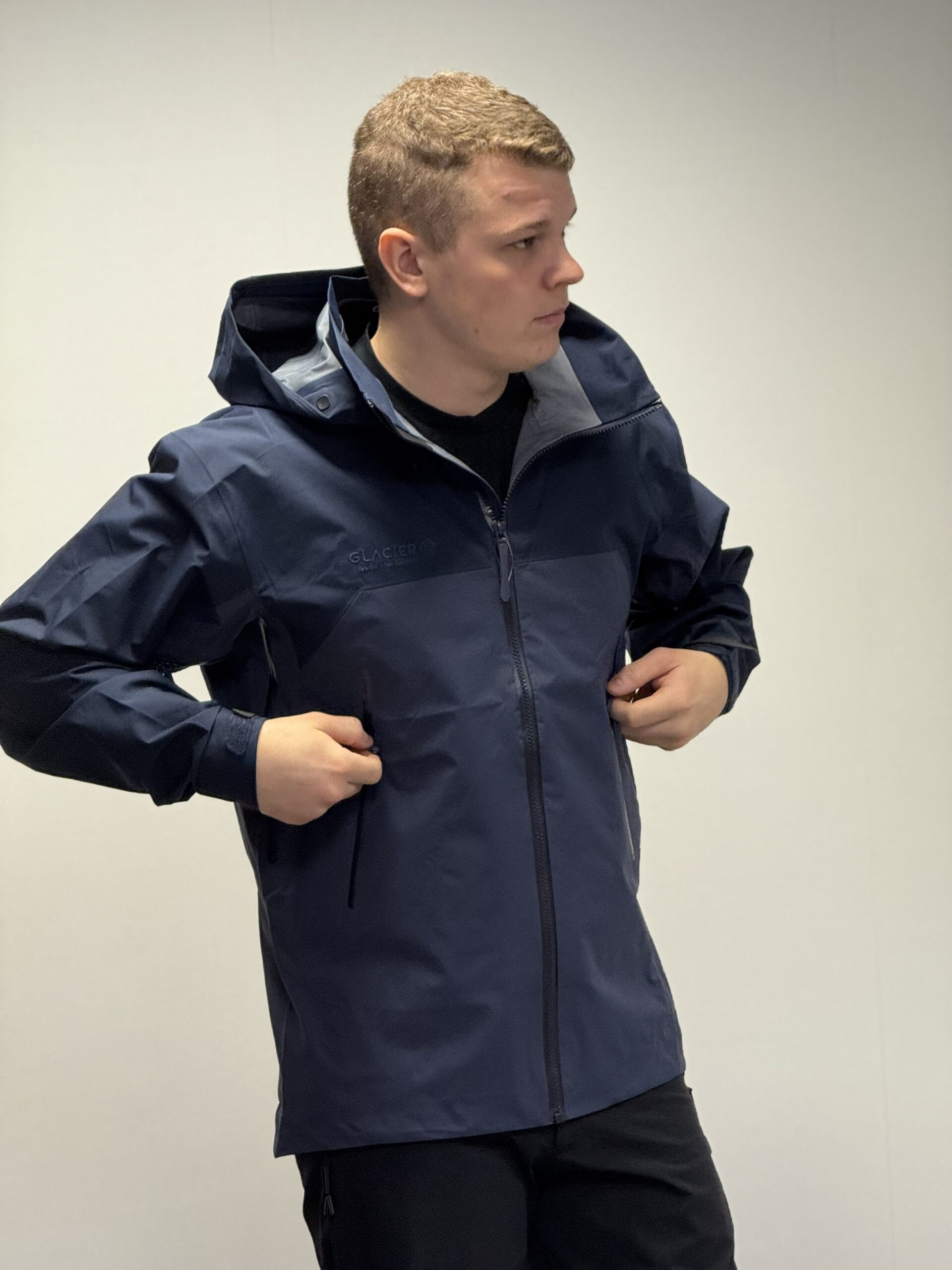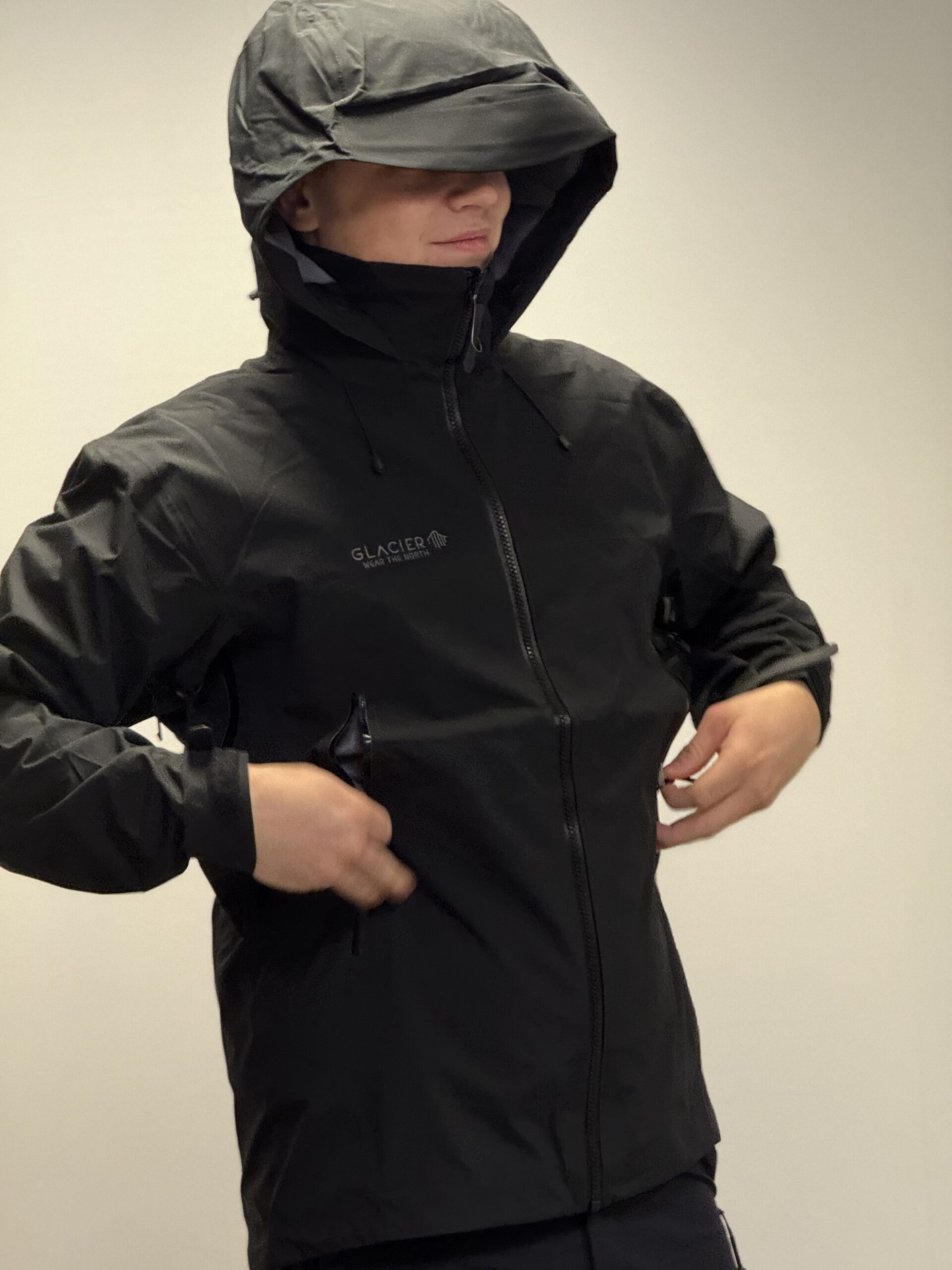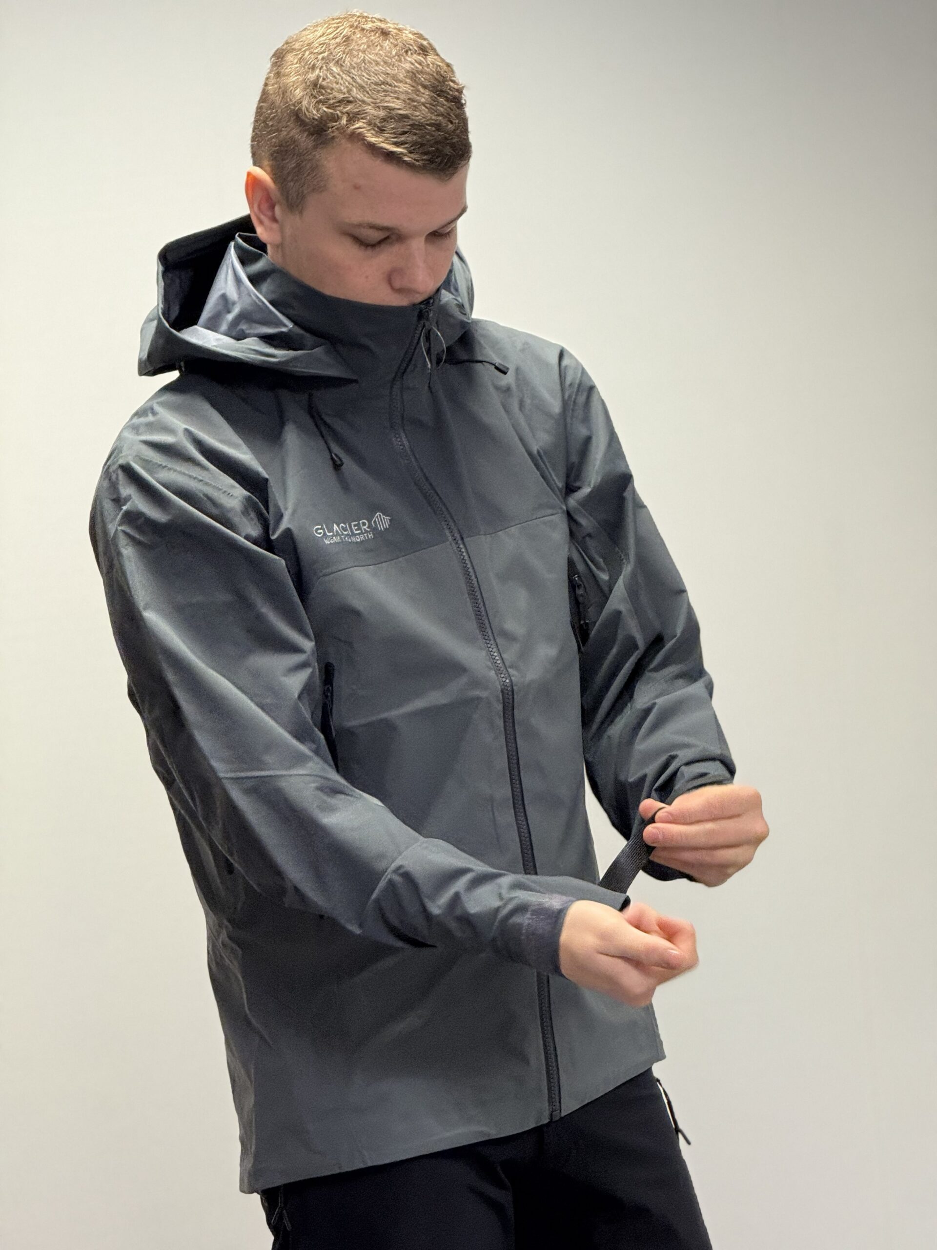 Jakken er laget i et pustende og vanntett stoff med høy komfort og lav vekt. Den har ventilasjon under armene, formsydde ermer og justerbar hette for optimal passform.